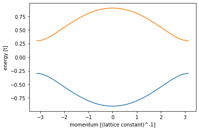 plt.xlabel("momentum [(lattice constant)^-1]")