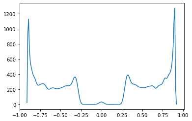 rho = kwant.kpm.SpectralDensity(hamiltonian, rng=0)
