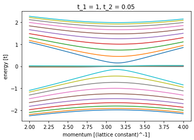 plt.xlabel("momentum [(lattice constant)^-1]")