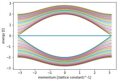 plt.xlabel("momentum [(lattice constant)^-1]")